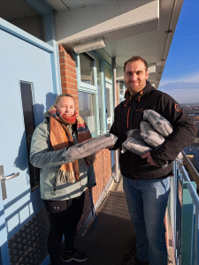 De Visserijschool in Katwijk, ook een mooi nieuwbouw project met sociale huurwoningen, droeg bij aan de KPI. Omwonenden daar hebben langere tijd ‘overlast’ gehad van het bouwverkeer, stof en geluidsoverlast door de nieuwbouw. Wat past er nu beter bij een Visserijschool en Katwijk aan Zee? Precies, sokken gemaakt van gerecyclede visnetten. Acties als deze verrassen in één keer tientallen huurders.